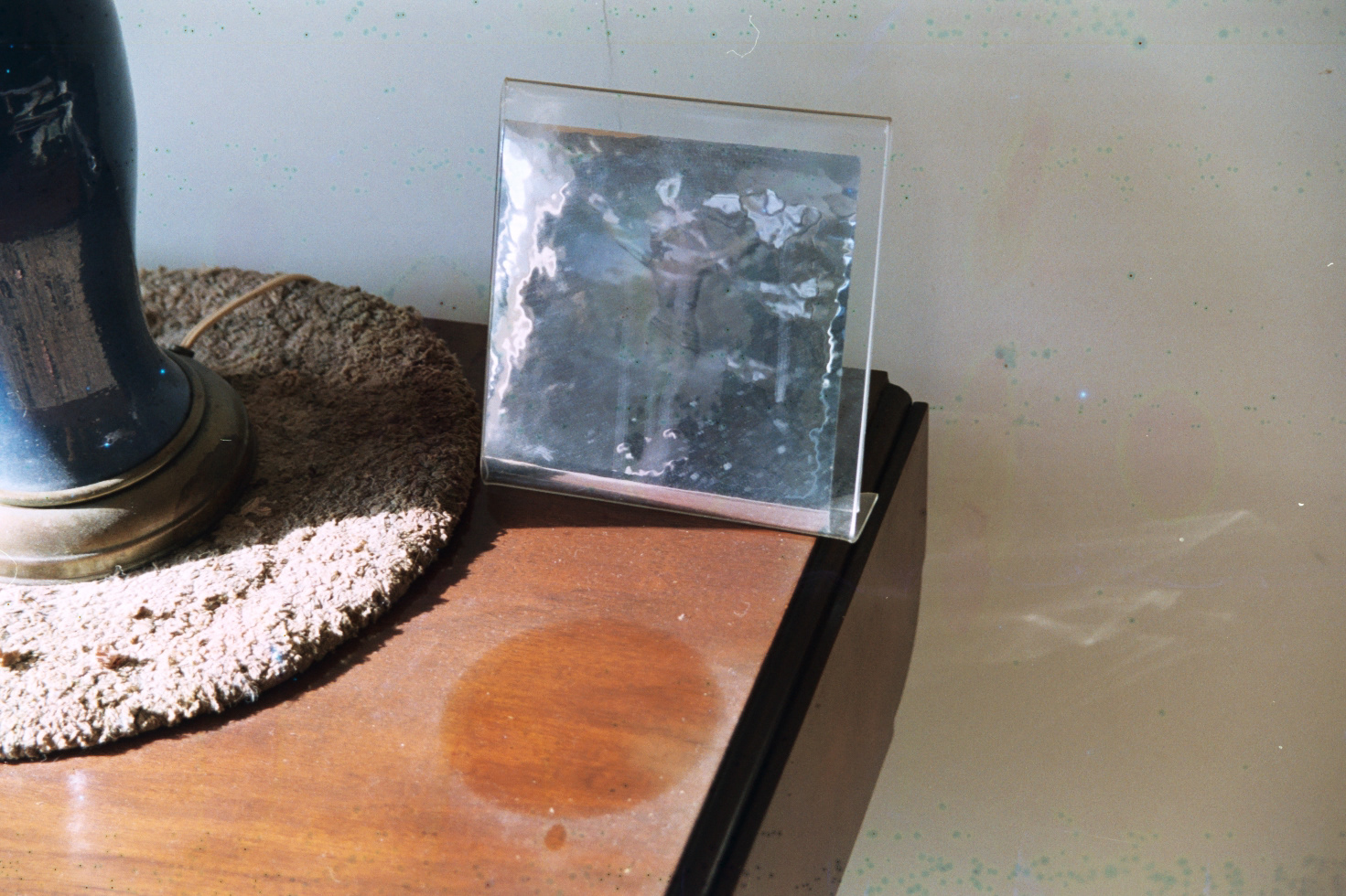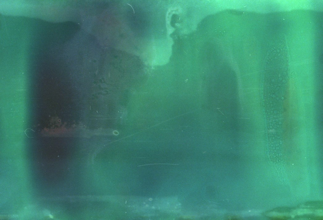 Before development, the 35mm film canisters were soaked in chemicals and alcohol to make a kind of simulacrum for my grandmother's dementia. The results give the images a blurred and weathered look. With this, the process of aging and destroying the film negatives becomes the art itself.